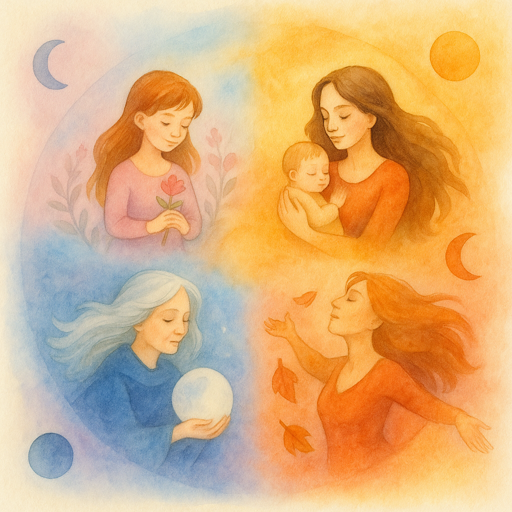Die 4 Lebensabschnitte/ Übergänge einer Frau vom Mädchen zur weisen Alten.